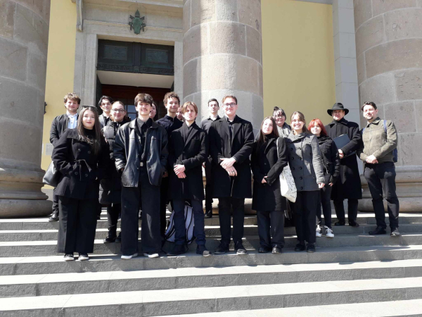 Virágvasárnap - a nagyhét kezdete előtt, - Jézus Krisztus jeruzsálemi bevonulására emlékeztünk a Bazilikában, ahol az Érseki szentmisén gimnáziumunk Kamarakórusa teljesített kórusszolgálatot az Érseki Fiúkórussal együtt.